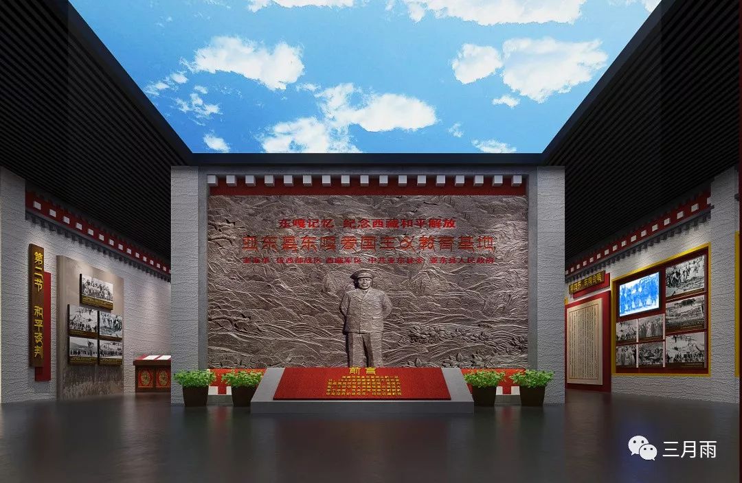 东嘎爱国主义教育基地由北京三月雨集团承建,于2018年年底顺利竣工。基地共分为“以打促和”“和平谈判”“东嘎会晤”“民主改革”“幸福生活”五个小节,采用图文展板和现代多媒体技术多种方式,以重大历史事件的时间顺序为线索,尊重历史、充分还原历史,真实地讲述了著名的昌都战役、西藏地方政府和谈代表赴京谈判和《十七条协议》签订过程、张经武将军进藏经历、西藏民主改革以及民主改革后新亚东的建设与发展。